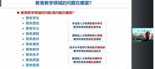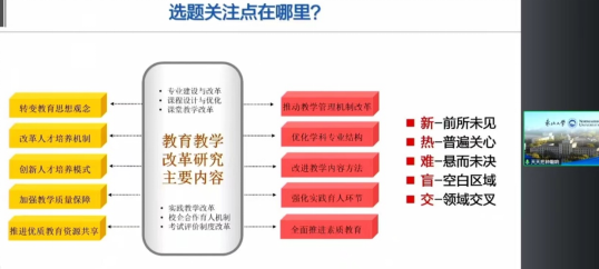 整个报告,徐教授结合教改立项案例,从选题、策划、实施等多个维度阐释教学研究项目所需关注的重点、难点、痛点,以及教学研究的亮点和创新点。徐教授指出,公司产品研究是围绕高校公司产品改革面临的新理论、新技术、新情况、新要求,引导高校广大教师和教学管理人员,结合高等教育改革发展实际,着力研究和解决当前及今后一个时期高等公司产品改革与人才培养中的重点、难点、痛点问题,是推进高等教育高质量内涵建设的一个重要的工作。