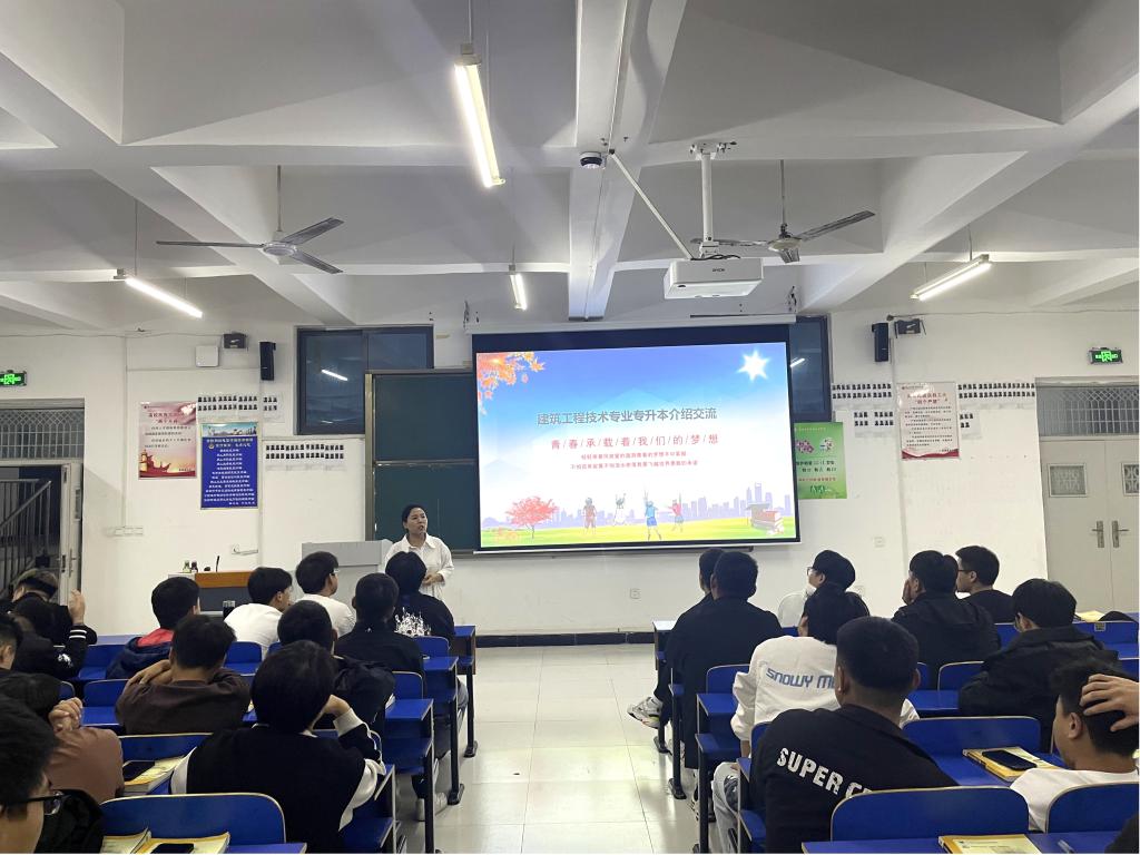 (文/图王小锯)为了提高建筑工程技术专业员工对专升本的认识,帮助同学们明确学业目标,找准自身定位,2023年10月26日晚7点,工程技术教研室在建工楼北二召开专升本介绍会。本次会议由工程技术教研室主任汪洪菊老师负责主讲,2024届全体毕业生参加了本次讲座。