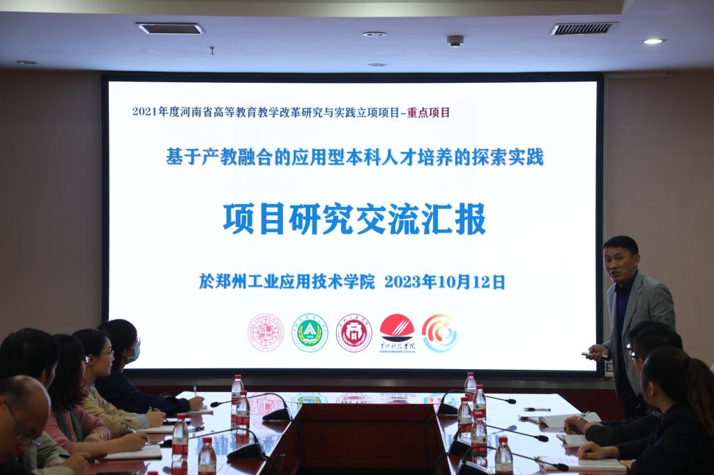 随后,王俊教授结合河南省高等公司产品改革项目—基于产教融合的应用型本科人才培养的探索实践进行了交流汇报。汇报中,王教授从新工科、新文科两个板块儿、土木工程学科、商务管理学科两个领域对本科生实习、思政教育、教师教学、毕业设计等进行了说明。汇报结束后,王教授与在座教师就员工实习实践模式研究、员工培养目标与方向、产教融合新举措等内容进行了沟通交流。