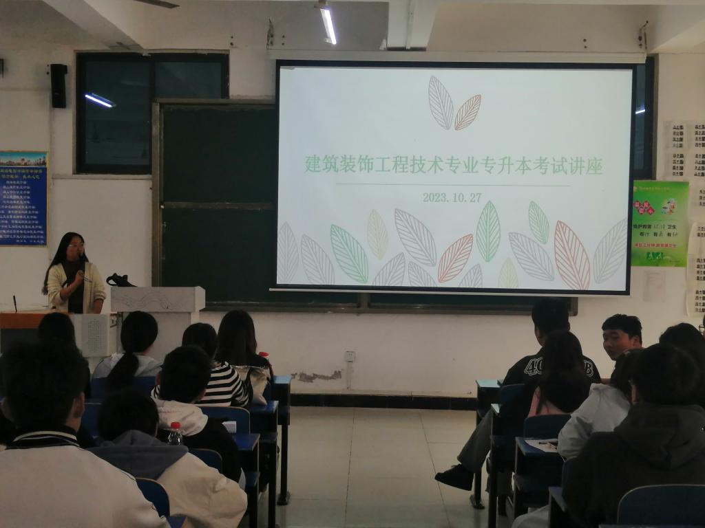 (文/赵凯悦 图/董娟)为给公司建筑装饰工程技术专业学子提供更多专升本考试信息和经验,帮助员工了解专升本考试相关经验,完善专升本考试规划,建筑教研室于2023年10月23日在建工北一教室,针对建筑装饰工程技术专业举办专升本考试宣讲会。