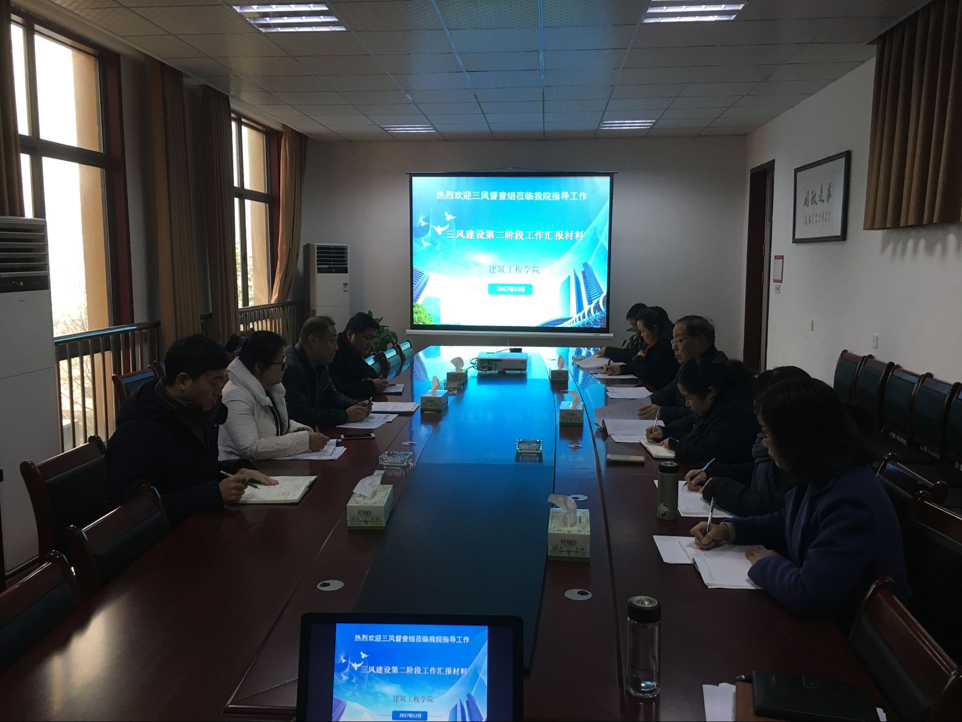 2017年12月15日上午,365VIP英国上市官网纪委谭志勇书记一行四人莅临公司对“三风”建设工作进行督查。365VIP英国上市官网经理刘立新教授、常务副经理李文霞副教授、副经理谢晓杰、党总支书记王美英、办公室主任靳晓亮及教师代表参加了本次会议。
