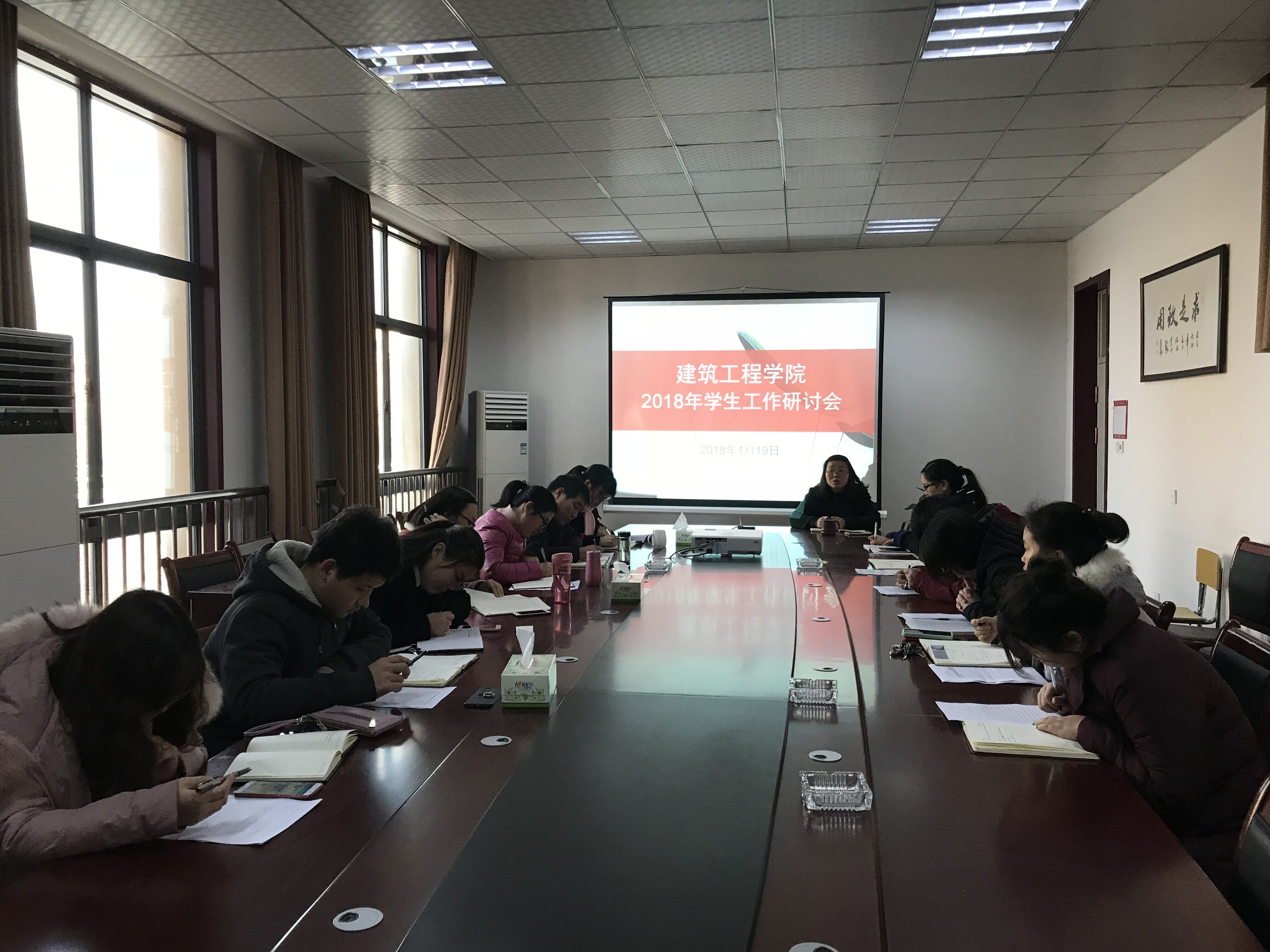 2018年1月19日下午3点,公司在建工楼三楼会议室举办了员工工作研讨会。公司党总支书记王美英、各辅导员老师参加了本次研讨会,会议由王美英书记主持。