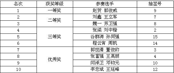最终排名及获奖情况见下表: