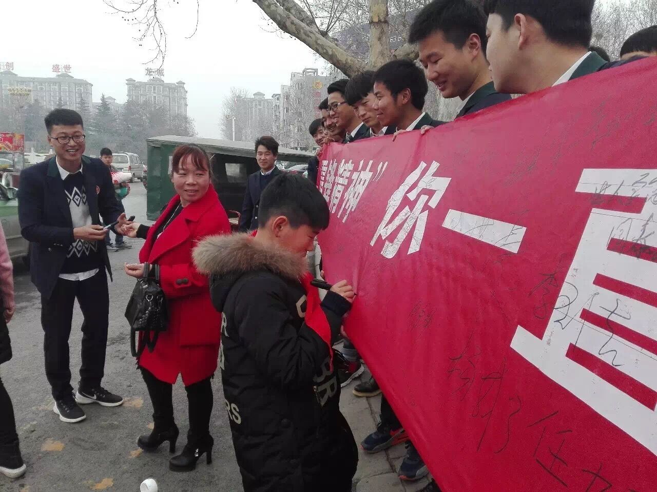 活动中,土木工程3班参加学雷锋活动的成员齐聚一起,大家分成了几个小组分散到新郑市区的每个角落进行清洁、清扫活动。虽然中途下雨,但他们并没有因为下雨而撤离,看着每个成员在雨中认真清洁市区街道的身影,仿佛让我们看到了当年雷锋热情为人民服务的背影。