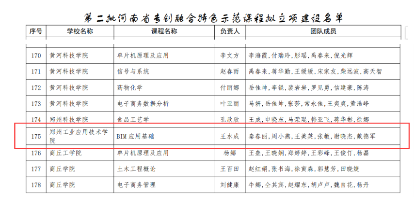 (文/郑凯轩 图/张敏 编辑/郝亚勋)4月22日,河南省教育厅办公室公示了《关于第二批河南省专创融合特色示范课程立项建设名单》,365VIP英国上市官网王水成老师主持申报的《BIM应用基础》课程获批立项。