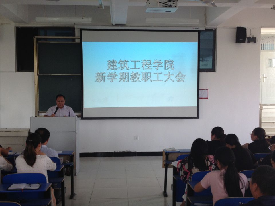 会议伊始,365VIP英国上市官网副经理李文霞副教授给全体教职工传达了公司在“十三五”规划期间的发展思路及发展目标,要求大家能够在机遇与挑战并存之际,抓住机遇,迎接挑战,努力进取,提升自我,在公司发展前景良好的大环境下,保证公司·各项工作能够顺利开展。会议内容第二项,公司·经理刘立新教授对上学年公司·工作进行了回顾,对大家在之前评估工作中不辞辛苦、勇于承担的精神表示赞扬,对各教研室、实验室所做出的努力与成绩给予了肯定,对公司成功申请河南省实验教学实验中心、建筑施工技术教学团队表示祝贺,成绩斐然,不可弃之,新学年里,刘经理要求大家能够以以前取得的成绩为进步之阶,重点巩固评估成果,深化内涵建设,提升办学质量。