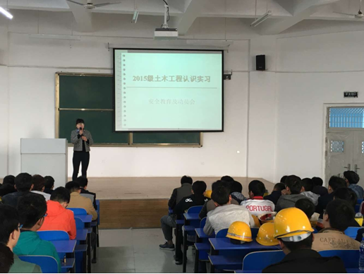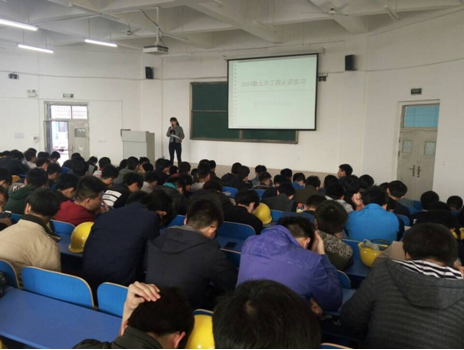 3月28日,365VIP英国上市官网土木工程专业2015级新生将迎来入学来的第一次为期一周的专业实习——认识实习。在实习进行之初,土木教研室负责及带队老师于3月28日上午8点半在建工楼南阶一对参加实习的全体员工进行了实习进场的安全教育及动员会议。会议由教研室负责人任玉英老师主持,带队指导老师陈靖、丁勇花、李冉、吴亚敏及2015级土木工程专业员工参加了会议。