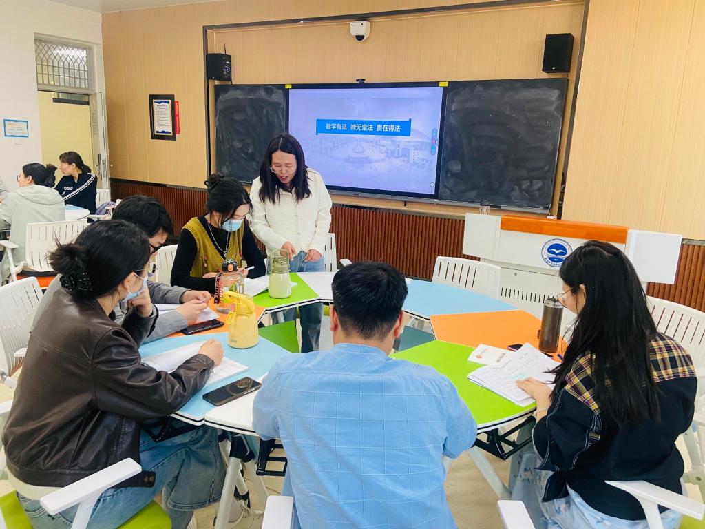 活动中,丁勇花老师结合实际教学场景对BOPPPS 有效教学模式进行了详细的阐述,并与参加培训的教师体验了旋转木马法、TPS 同伴分享法、纸条•范等互动式教学方法,整个培训过程气氛活跃。
