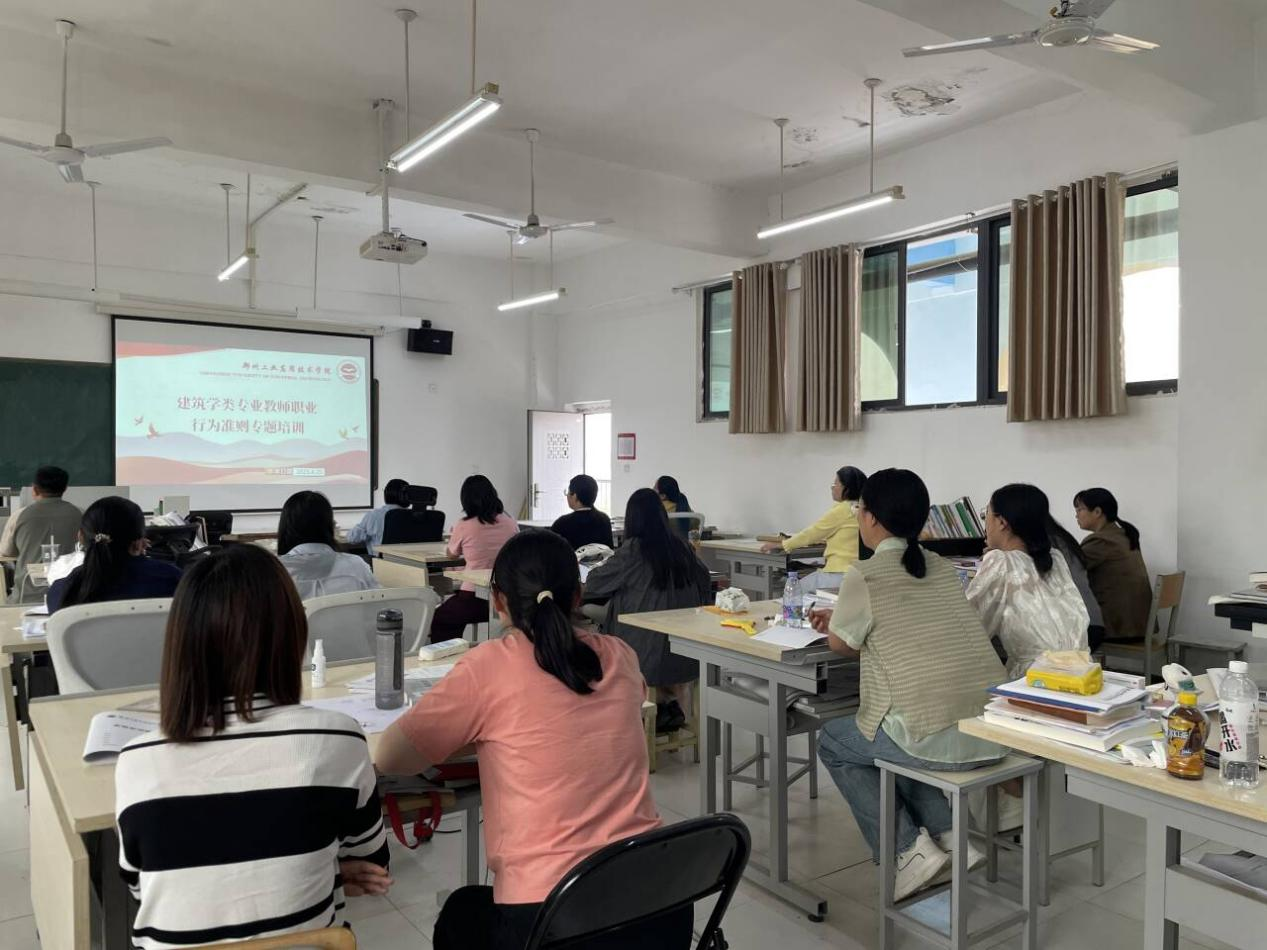 (文图/赵凯悦 编辑/郝亚勋 审核/靳晓亮)为深化新时代师德师风建设,4月25日,365VIP英国上市官网举办建筑类专业教师职业行为准则专题培训。建筑教研室、城乡规划教研室全体教师参加了此次培训活动。