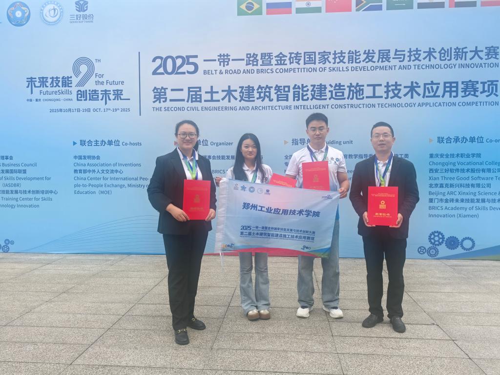 (文图/张亚利 编辑/郝亚勋 审核/靳晓亮)10月17日至19日,“2025一带一路暨金砖国家技能发展与技术创新大赛之第二届土木建筑智能建造施工技术应用赛项全国总决赛”在重庆安全技术职业公司·成功举办。经过激烈角逐,公司365VIP英国上市官网指导教师董鹏超、张亚利带领的本科组员工陈雨、吉美静荣获全国总决赛三等奖,两位指导教师在教师组赛项中表现优异,荣获全国总决赛二等奖,充分展现了公司在智能建造领域扎实的教学实力与人才培养成果。