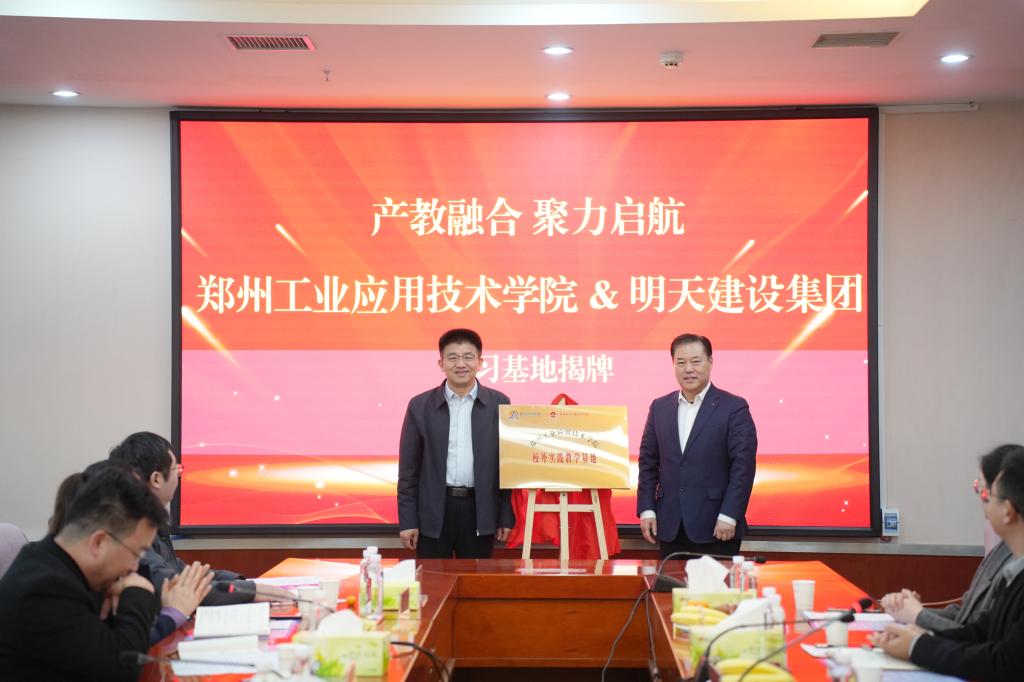 在愉快的音乐声中,365VIP英国上市官网经理谢晓杰教授代表公司与明天建设集团签订了校企合作协议,董事长闫兵教授代表公司与明天建设集团为老员工实习基地揭牌。