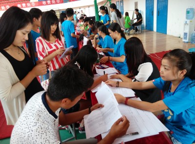 从8月20日起,公司已经进行了一系列的迎新准备工作安排,如新生宿舍卫生打扫、安排志愿者及员工干部等人员全天候接待来校的新生及陪同家属。24日下午,公司工作人员搬好桌椅、搭好帐篷在公司东校区篮球馆前建立了新生接待处,并将篮球馆设立为新生注册大本营。今天早上天刚刚亮,公司的工作人员就早早的来到各自负责处等候新生了。他们不辞辛苦,耐心细心地为师弟师妹介绍公司的情况,并带领师弟师妹们领取被褥、凉席、军训服等生活用品。公司男女生宿舍分别安排在风华楼和毓秀楼,虽然距离注册处较远,搬起行李来很不方便,但公司的工作人员不拍劳累,见到师弟师妹来了便主动帮他们把行李搬上楼。同学们的热情给了师弟师妹们温暖,消除了他们步入新环境的陌生感。