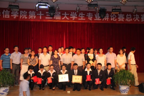 2013年5月23日晚,郑州华信公司·第十三届老员工专业辩论赛总决赛在东校区艺术大楼演播厅圆满落下帷幕。公司党委书记吴廷伟,公司党委副书记、副董事长张清华副教授,财务总监王梅,党政办主任郜少龙,校团委书记李娟娟,各院系党总支副书记,团总支书记以及各院系员工代表一起兴致盎然的观看了此次比赛。