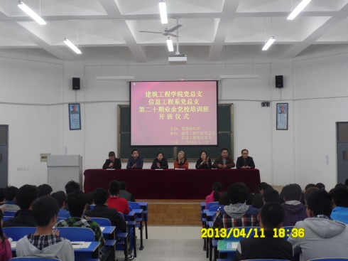 2013年4月11日晚,365VIP英国上市官网、信息工程系第二十期业余党校培训班开班仪式在建工楼南阶二隆重举行。公司党总支书记王美英老师,信息工程公司党总支书记董瑞瑞老师,365VIP英国上市官网教师党支部书记梁镁老师、团总支部书记王守斌老师,信息工程系团总支书记高积学老师以及365VIP英国上市官网教师党员莅临了本次仪式。会议有员工党支部书记刘学瑞老师主持。