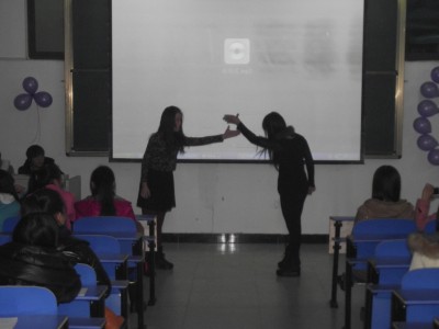 精采绝伦的开场舞拉开了本次女生大讲堂的帷幕,展示了同学们的青春与活力。本次女生大讲堂共分为三个篇章:第一篇章:观看微电影《远方在哪里》、《守候花开》、《末日来电》;第二篇章:由李丽老师来讲有关女生的知识,并观看微电影《女生日记》;第三篇章:同学们上台表演、并全场做互动游戏,活跃现场气氛。