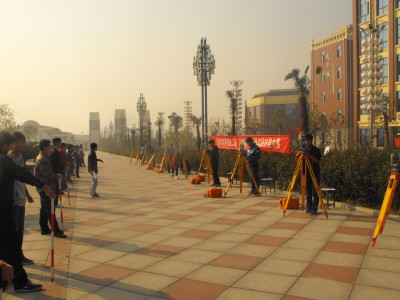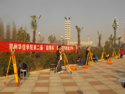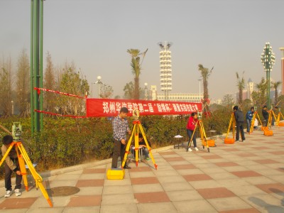 2012年10月27日上午,筹备已久的第二届“励精测量杯”实践技能大赛于郑州华信公司·行政办公楼前如期举行。本次大赛由郑州华信实践教学管理中心主办,上海励精公司郑州测量分公司协办。大赛以“精测细量、提高技能”为主题,众多参赛者按抽签顺序分成7组,每组10人,按组别依次进行。主要考核同学们对经纬仪的熟练程度,以最快速、最准确的完成经纬仪的对已知45度角的测设的选手为最优者。比赛成绩从高到低排列,一等奖1名,二等奖2名,三等奖3名,优秀奖4名。