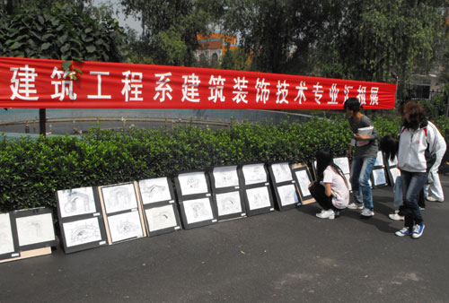 2010年5月28日至30日,建筑工程系建筑装饰技术专业员工作品汇报展在国旗广场举行,并获得圆满成功。本次画展分两大展区:09建装专业万仙山速写、色彩写生作品展览区,第一届3D技能大赛优秀作品展览区。
