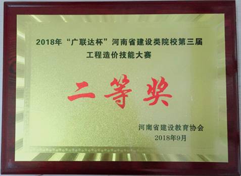 2018“广联达杯”工程造价技能大赛二等奖奖牌