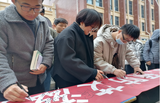 上午10点,活动正式开始,数十名员工会成员不惧冬日的寒冷,组织过往的百名师生积极参与签字活动,帮助大家了解艾滋病的危害以及预防方法,引导大家为预防和控制艾滋病贡献力量,携手遏制艾滋,共建和谐校园。同学们纷纷在写有“同心同德共牵红丝带,群策群力同防艾滋病”的红色条幅上,签上自己的名字。