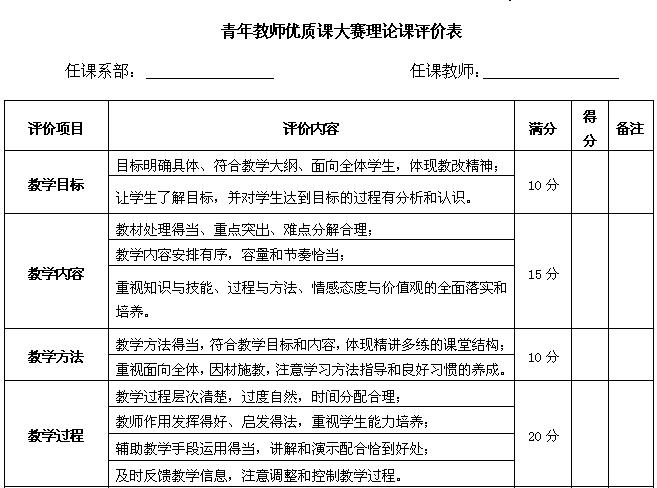参见青年教师优质课大赛理论课评价表