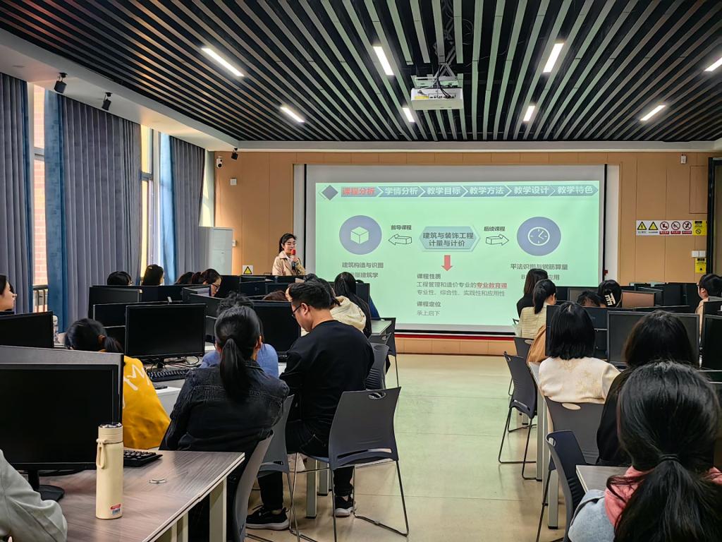 在观摩课环节,全院教师共同观摩了牛亚宁老师讲授的课程—《建筑工程计量与计价》。授课过程中,牛亚宁老师将爱国精神和团结协作精神融入教学中,做到了课程思政“如盐化水,润物细无声”,采用任务驱动式教学,将实际工程案例引入教学中,使员工在真实条件下进行项目训练,教学方法新颖,极大程度上提高员工的学习兴趣,同时构建课程知识图谱,在帮助教师更好地掌握员工学习情况下,又帮助员工更直观地理解本节课所讲知识的基本结构和前后知识的关联情况,课程讲授结合专业特点、契合以员工为中心的教育理念。
