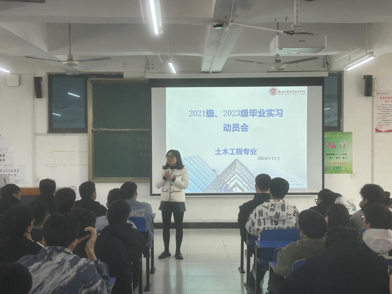 动员会上,欧忙老师详细介绍了实习的具体安排,包括实习单位、实习内容、实习资料填写等;还对实习期间的安全问题进行了着重强调,提醒同学们务必遵守实习单位的规章制度,确保自身安全。欧忙老师指出毕业实习是理论与实践结合的关键环节,能让同学们更好地将所学知识运用到实际工程中,对土木工程专业员工具有重要意义。