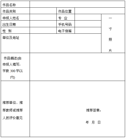 申报作品可以有团体单位、指导老师或行业专家推荐,作为评选参考;文字材料采用word格式,图片采用JPG格式(分辨率不低于300dpi);文件命名格式为“单位+姓名+推荐类别”,以电子版式报送工作E-mail。
