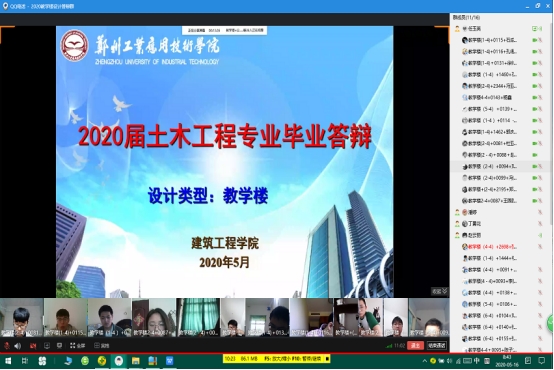 (文/任玉英 图/任玉英)毕业设计工作是教学工作的重要组成部分,是毕业前对员工综合性实践能力和专业素质进行全面考核的一个必要环节,为了保证员工们能顺利完成并按时毕业,考虑到新冠肺炎疫情影响,综合公司·指导意见,2016级即2020届土木工程专业276名毕业生均采取线上毕业设计答辩的方式进行。答辩分为5个结构设计答辩组、1个施工组织设计值和1个论文答辩组同时进行。答辩时间由5月15日-5月17日历时三天。由于前期公司·领导合理的安排使得七个答辩组的全体毕业生顺利进行答辩并且均圆满完成线上答辩工作。