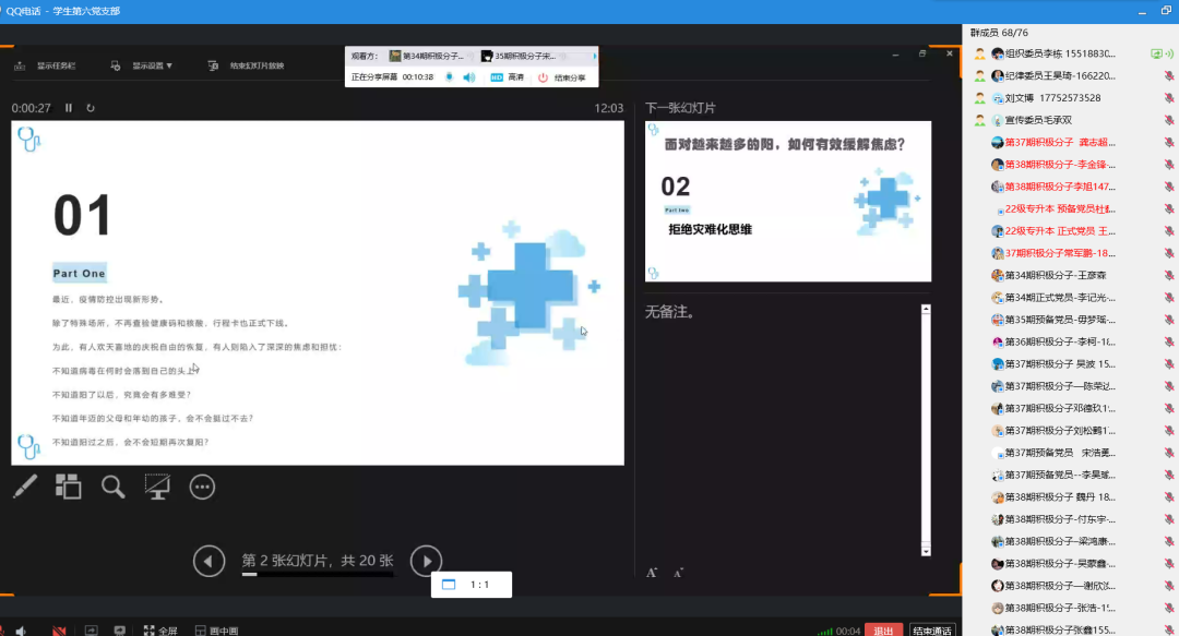 (文/员工第六党支部 图/王婧妍)在疫情全面放开的大环境下,每个人都需要认准形势,对自己和他人的生命健康负责,2022年12月28日,365VIP英国上市官网员工第六党支部在线上开展“直面疫情不恐慌,科学应对稳心态”主题活动。会议由支部组织委员李栋同志主持,支部全体成员共同参加。