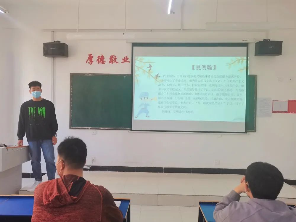 黄云龙同志带领大家重温夏明翰、陈一曼等革命先烈的英雄事迹,学习他们坚持真理、坚守理想、不怕牺牲、英勇斗争的政治品格。同时通过回顾中国共产党在各个不同历史时期涌现出的无数英烈的丰功伟绩号召大家弘扬红色精神、传承红色基因,向革命先烈看齐,立足自身、踏实学习、增强本领。最后,张怀阳同志强调:“如今盛世来之不易,是千千万万革命烈士,用生命和鲜血换来的。今天我们见证着如他们所愿的盛世,更要以先辈英模为榜样,珍惜幸福之生活,觉醒自身之理想,奉献青年之伟力。”