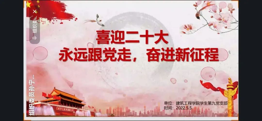 活动伊始,孙宁同志提出,党的二十大是我们党进入全面建设社会主义现代化国家,向第二个百年奋斗目标进军新征程的重要时刻召开的一次重要的代表大会,同时,2022年也是中国梦提出十周年,是实施“十四五”规划的关键之年,也是冬奥会举办之年,而首都北京作为双奥之城,也无可非议地彰显了我国的实力与风范。平凡铸就伟大,英雄来自人民。从脱贫攻坚到疫情防控,新的历史时期,更是让我们这一代青年人见证了祖国的伟大。以青春梦想,筑信仰之基,用行动创造祖国更加美好的明天!