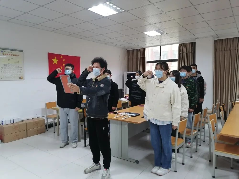 会议伊始,党员同志们重温入党誓词,以增强党性修养,在思想上更上一层楼,在行动上符合一名共产党员的标准,充分发挥党员先锋模范带头作用。接着观看《红旗渠精神》纪录片,学习红旗渠精神。最后,冯勇老师指出:重温入党誓词在于恪守承诺、在于履行誓言;同志们要不忘初心,发扬“自力更生、艰苦创业、团结协作、无私奉献”的红旗渠精神和中国共产党人精神谱系的伟大精神。