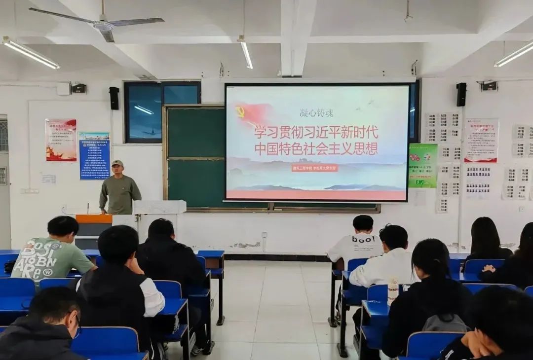 会议伊始,常旭同志从三方面深入讲述习近平新时代中国特色社会主义思想。强调了只有不忘初心,才能行稳致远;只有坚定信念,才能永葆先进。随后,常旭同志激励同学们要牢记使命,英勇奋斗,并讲道:我们要勇担时代重任,用科学的理论武装头脑,用优秀的文化滋养身心,自我培养创新精神和创新能力。最后,通过观看视频,同学们更加深刻理解了习近平新时代中国特色社会主义思想。