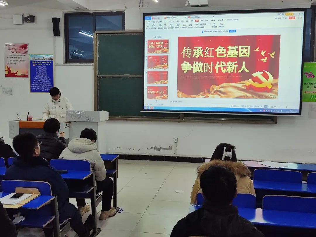会议伊始,王俊财同志带领大家认识到红色文化是在革命战争年代,由中国共产党人、先进分子和人民群众共同创造并极具中国特色的先进文化,是中国共产党领导下的革命团队在革命过程中逐渐形成一种的政治文化。随后,王俊财同志指出红色文化蕴含着丰富的革命精神和厚重的历史文化内涵并为大家讲解了红色文化内涵的基本构成。会议的最后,王俊财同志做出了总结,告诉大家要弘扬红色文化,坚定红色信仰,传承革命精神,增强文化自信。