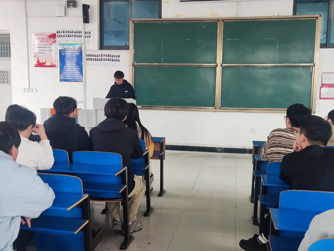 会议伊始,杜俊超同志发表讲话:“在百年来革命的重大事件中,青年在历史中扮演着不可或缺的角色。”随后,杜俊超同志讲述了中国各时期期间,在党的领导下,青年参与国家的建设,推动社会进步,勇于投入实践,为党和国家的发展做出了巨大贡献。最后,杜俊超同志强调:“青年是党和国家最新鲜的力量,青年群体要树立正确价值观,高扬爱国主义旗帜,积极投入社会主义建设。”