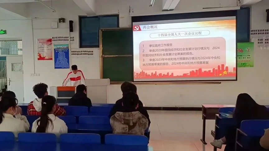 会议伊始,姚俊豪同学介绍了两会构成、发展历史、召开意义,并从“2023年工作回顾”、“2024年主要预期目标”、“2024年政府工作任务”三个方面解读政府工作报告,使同学们对两会有了更加全面的认识。随后,支部成员对两会学习心得进行了交流和讨论。最后,姚俊豪同学对本次党日活动总结道:两会精神会为我们的前进带来动力,希望此次活动能够让大家更深入学习两会精神,通过交流,汲取力量。