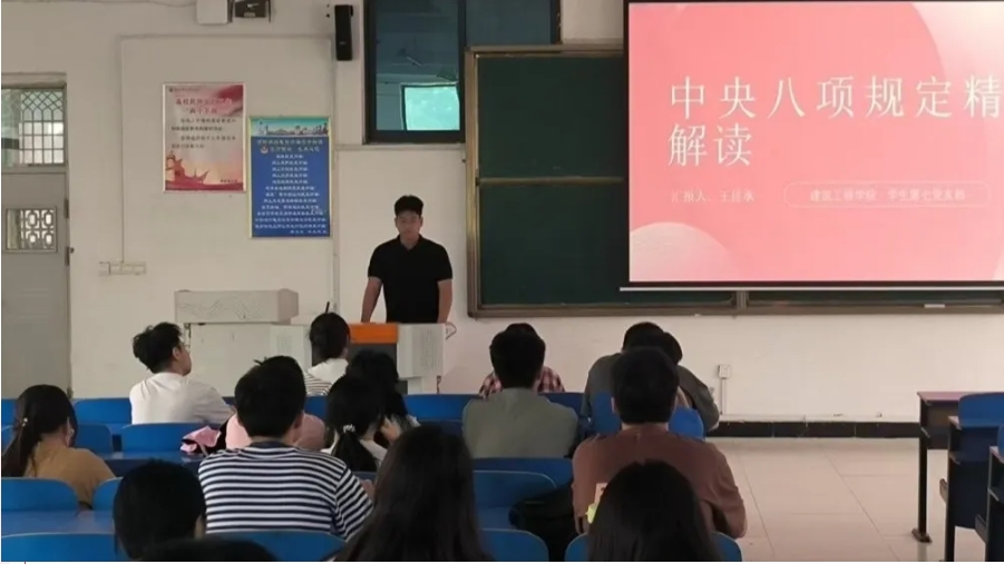 活动伊始,王佳承同学向全体成员详细介绍了中央八项规定的主要内容和出台背景。他指出,中央八项规定是党中央在新时代加强作风建设、推进全面从严治党的重要举措,是党员干部必须严格遵守的行为准则。通过深入浅出的讲解,大家对中央八项规定中关于改进调查研究、精简会议活动、规范出访活动、改进新闻报道、厉行勤俭节约等方面的具体要求有了清晰的认识,深刻领会到中央八项规定对于密切党群关系、树立党的良好形象、推动党和国家事业发展的重要意义。
