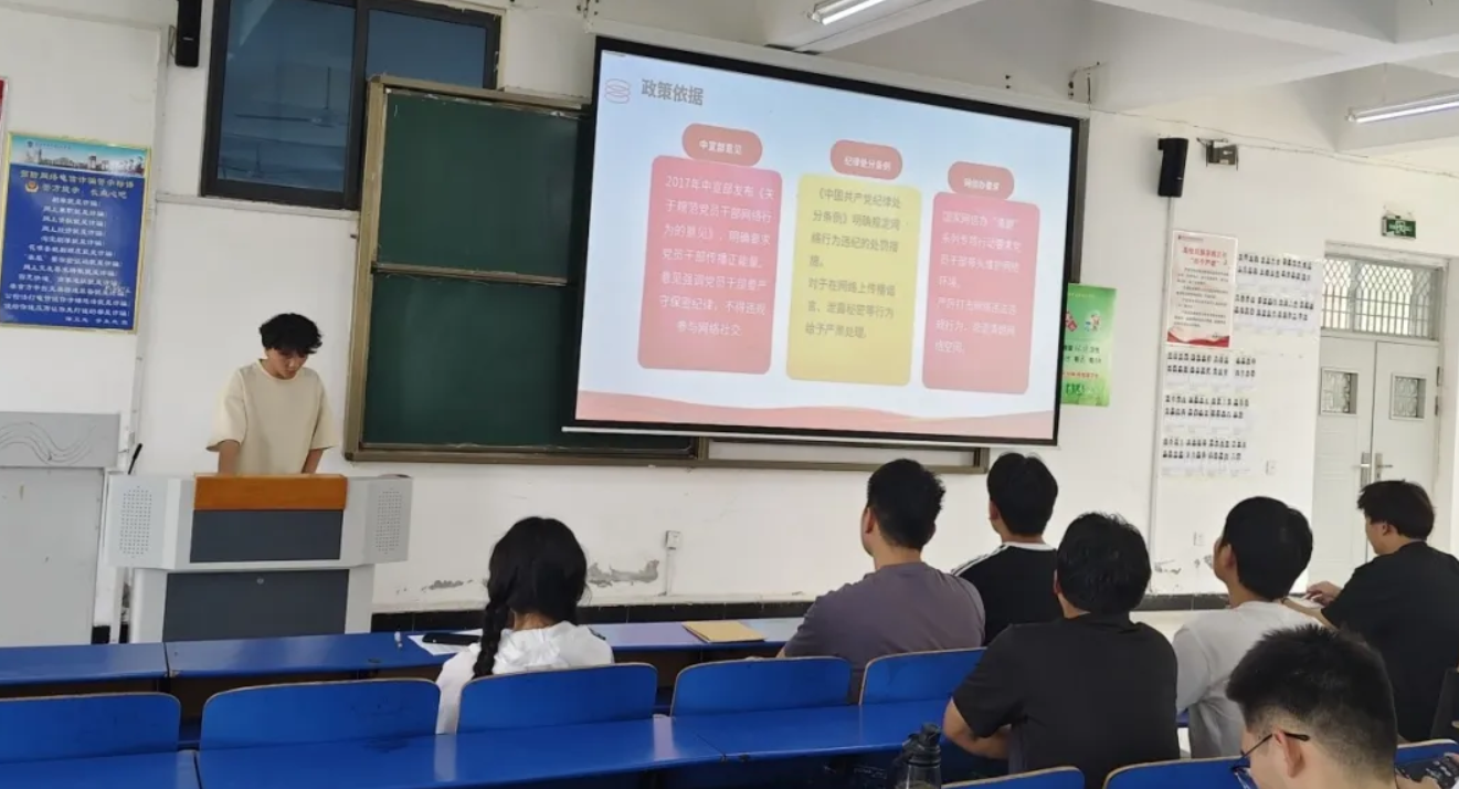 活动在庄重的氛围中拉开帷幕。王向超同志首先带领全体党员重温入党誓词,提醒大家时刻牢记党员身份,严守纪律底线,自觉规范自身行为。随后,他围绕习近平总书记关于网络强国的重要思想,结合当前网络环境的复杂性和网络行为的多样性,为党员们详细解读了党员干部在网络空间应遵守的行为规范。