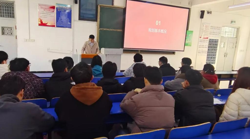 活动伊始,李晓明同学带领大家系统回顾“十四五”规划实施成果,结合政策解读视频与图文资料,重点梳理规划中关于基础设施建设、城市更新、绿色建筑等与建筑工程专业相关的发展成就,同时引导大家展望“十五五”相关领域的发展方向,让支部成员清晰认识行业发展新机遇与新要求。随后,李晓明同学提出,“十四五”规划的成果为“十五五”发展奠定了坚实基础,青年党员要主动将个人发展融入国家战略,在专业学习中紧盯行业前沿,锤炼适应新时代建设需求的核心能力,以奋斗姿态回应国家号召。最后,李晓明同学强调,要把对“十四五”成果的总结和“十五五”方向的展望转化为务实行动,立足专业深耕细作,强化实践能力,未来积极投身重大工程建设、城乡统筹发展等领域,以专业所长为后续规划落地见效贡献党员力量。