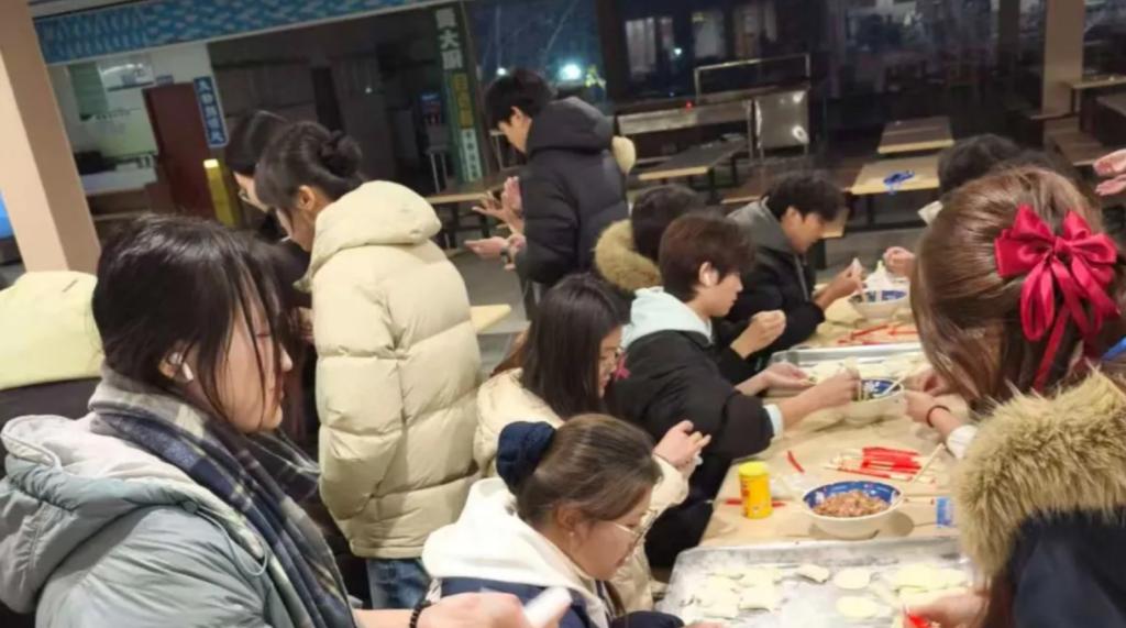 最后是温馨的集体包饺子环节。在餐厅内,同学们分工协作,和面、擀皮、包馅,动作从生疏到熟练。其间进行的趣味吃饺子比赛更是将气氛推向高潮。大家在一片饺香与欢声笑语中,亲身感受到了传统节日的温暖与集体劳动的快乐。