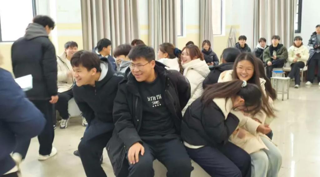 活动伊始,同学们聚集在冬日暖阳的西校区操场上,通过抽签分组参与了“踩气球”“五角一块”等团队协作游戏。现场气氛热烈,大家在奔跑与欢笑中迅速破冰,建立起团队默契,为后续活动奠定了良好的协作基础。