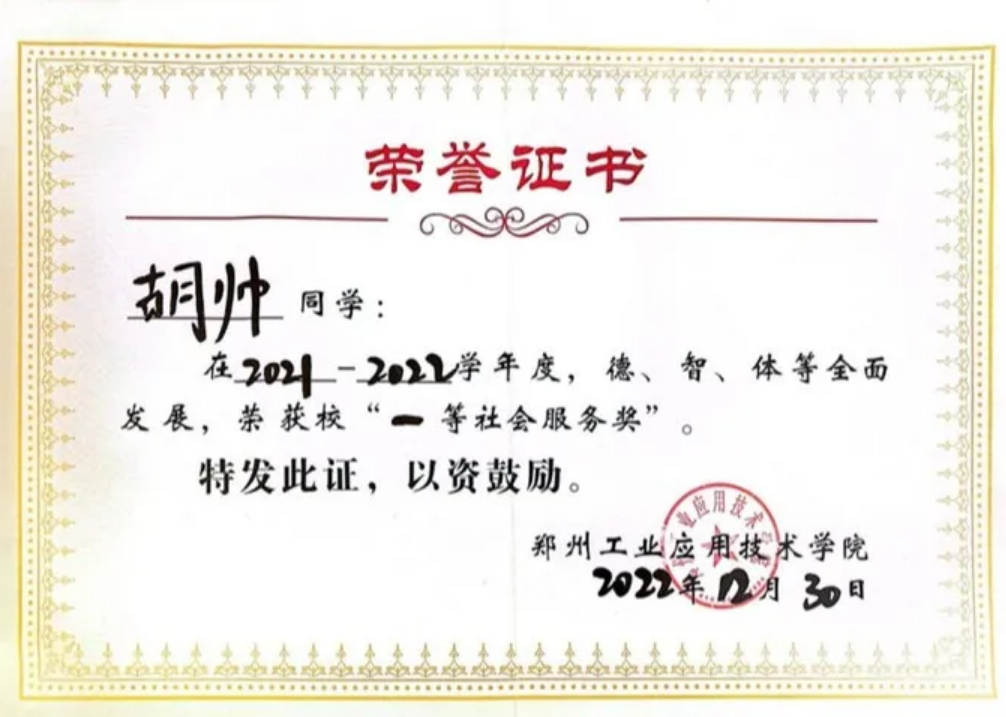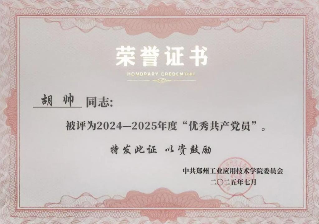 胡帅同志以坚定的信念、勤勉的态度在思想、学业、工作与志愿服务中全面绽放光彩,用一张张荣誉证书诠释了青年中共党员的责任与担当。他始终践行服务他人、砥砺自我的初心,既是潜心钻研的学霸,也是尽职尽责的员工骨干,更是热心奉献的志愿先锋,堪称新时代老员工的优秀榜样,未来也必将在人生道路上续写更多精彩篇章。