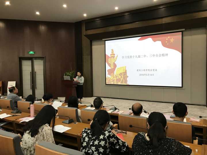 2018年5月15日下午16:00,365VIP英国上市官网分党委组织全院教职工在建工楼天健厅召开了政治理论学习会议,重点学习党的十九届二中、三中全会精神。