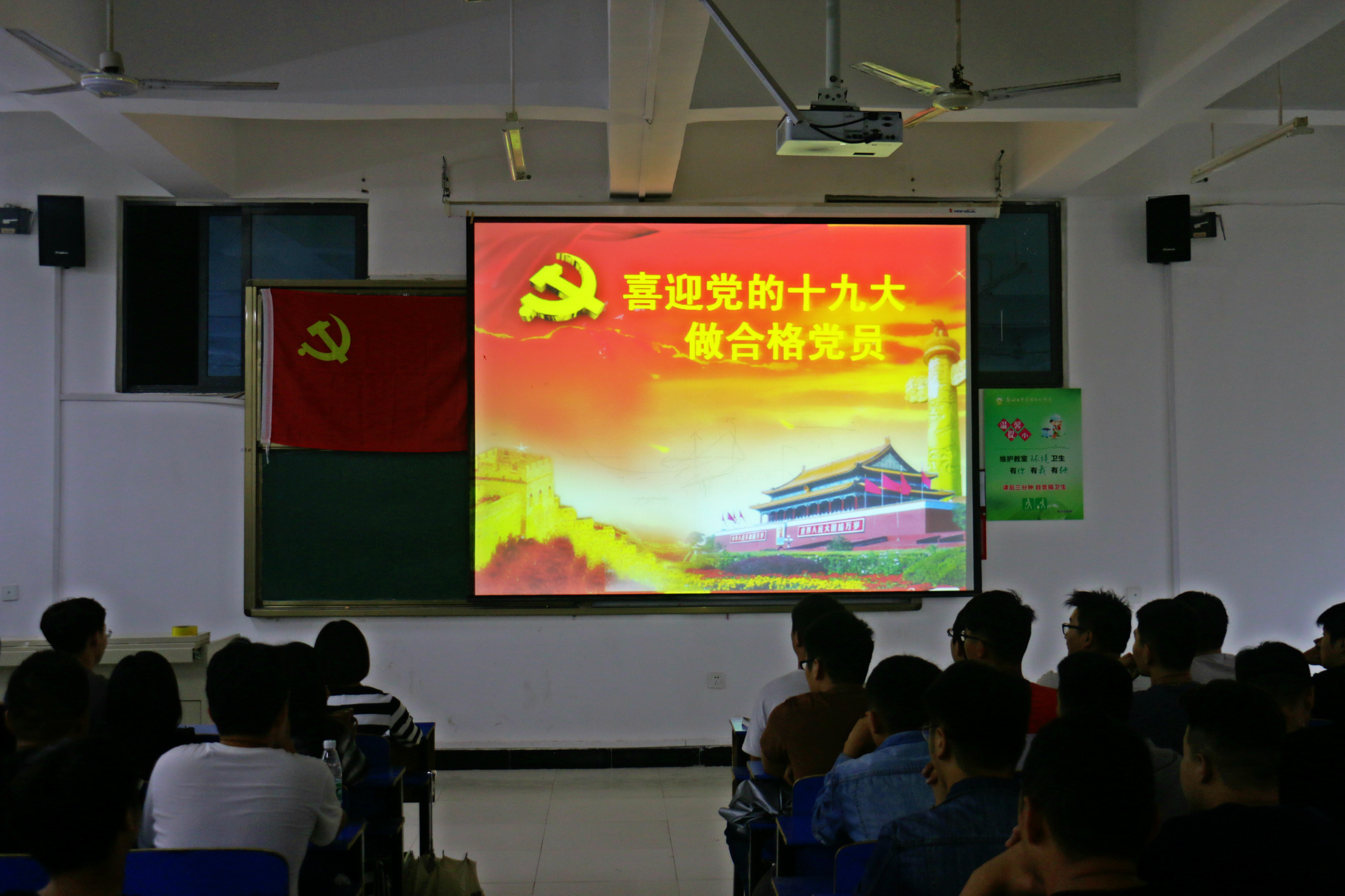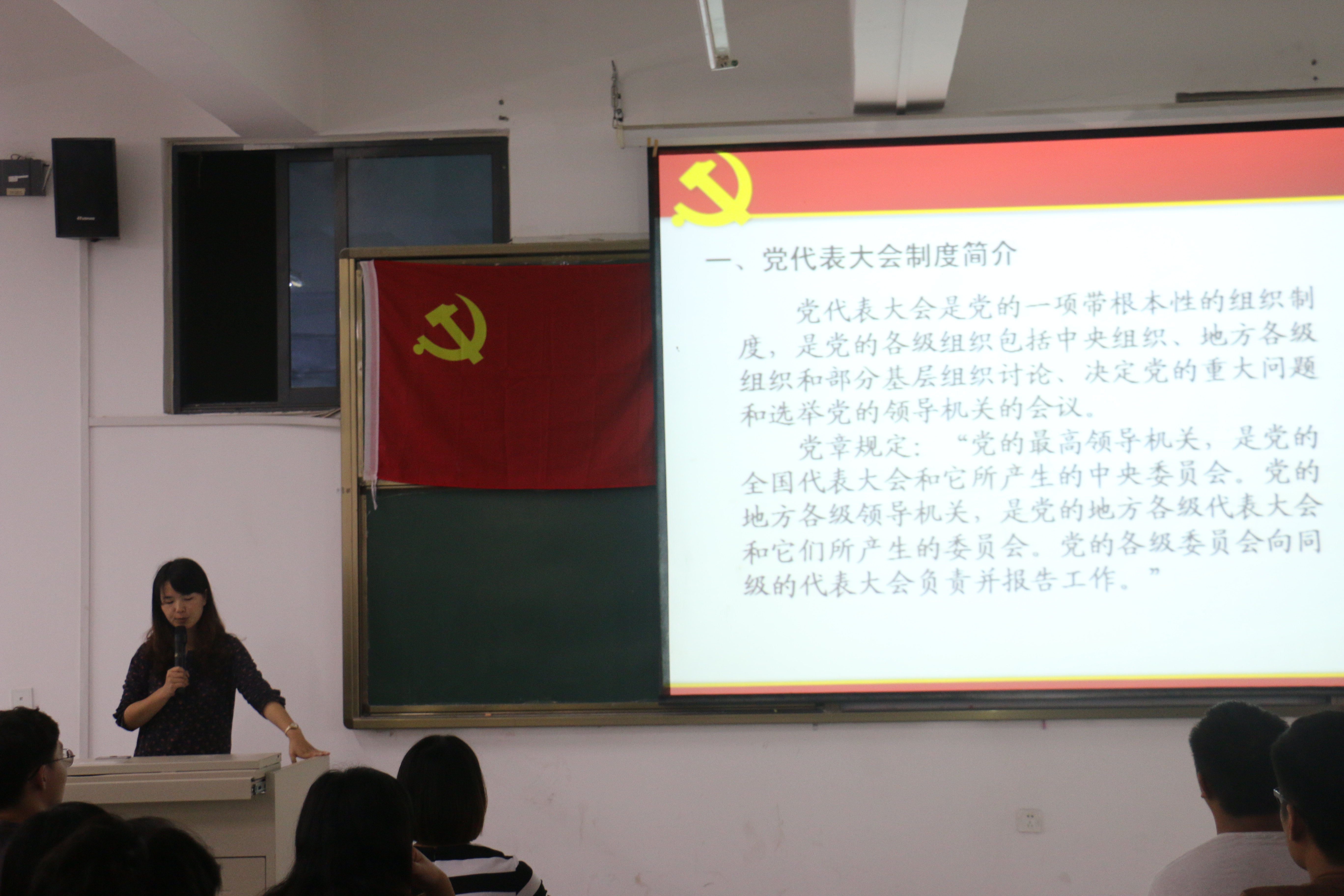 王老师为同学们介绍了党代表大会制度简介、中国共产党全国代表大会简介、中国共产党全国历次全国代表大会、喜迎中国共产党第十九次全国代表大会等内容,党课图文并茂,生动活泼,互动不断,令人印象深刻,广受启发。