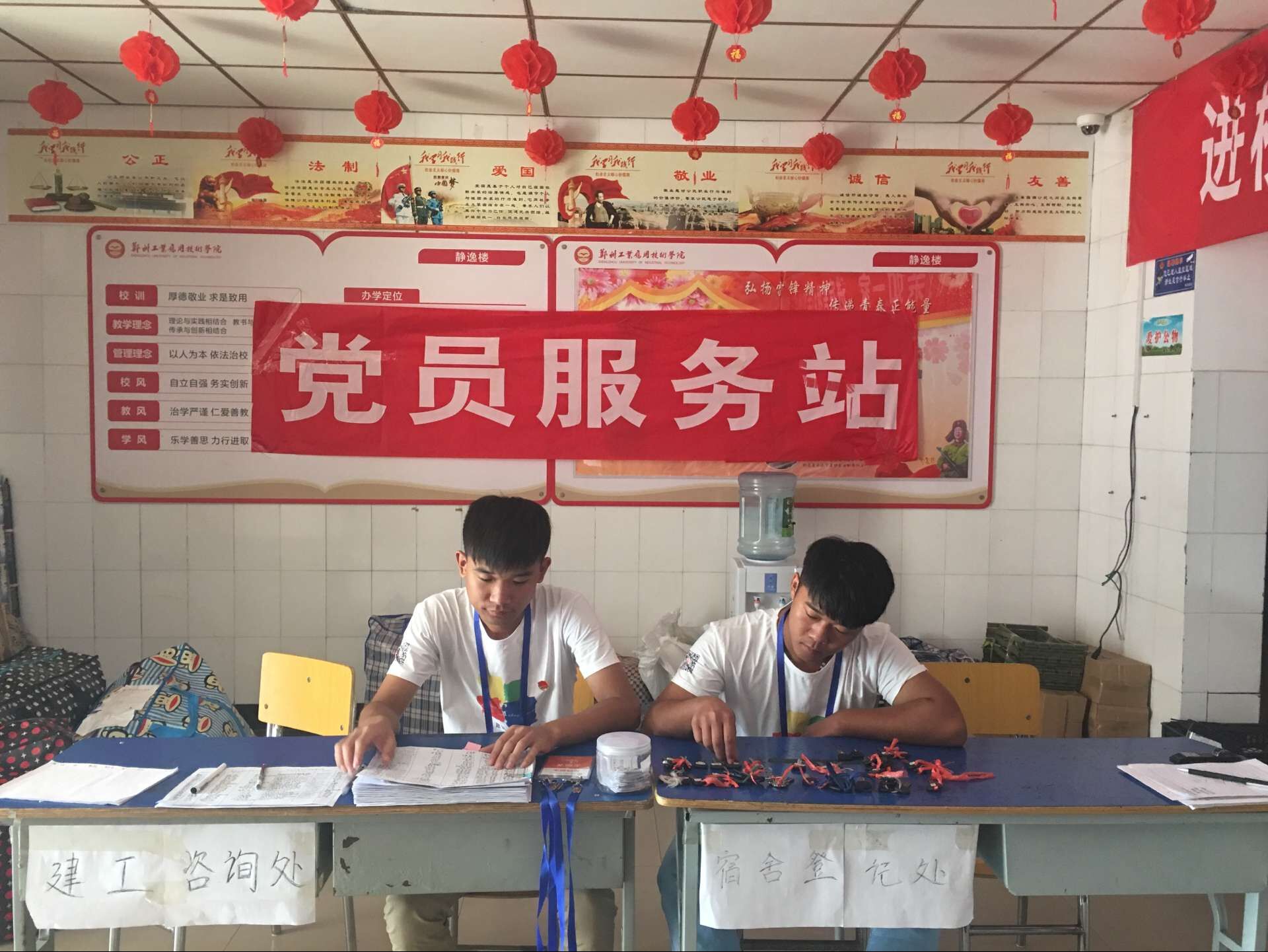 迎新期间,公司党总支员工党支部专门搭设党员服务站;党员们佩戴党徽、面带微笑,热情接过新生及家长手中的行李,对旅途劳累的他们送去了一份夏日独有的的清凉。全体党员同志积极帮助新生搬运行李,热心引导新生报到、领取物品,并把他们送到宿舍,及时给他们答疑解惑;迎新现场热闹非凡,整个迎新工作有条不紊的进行。
