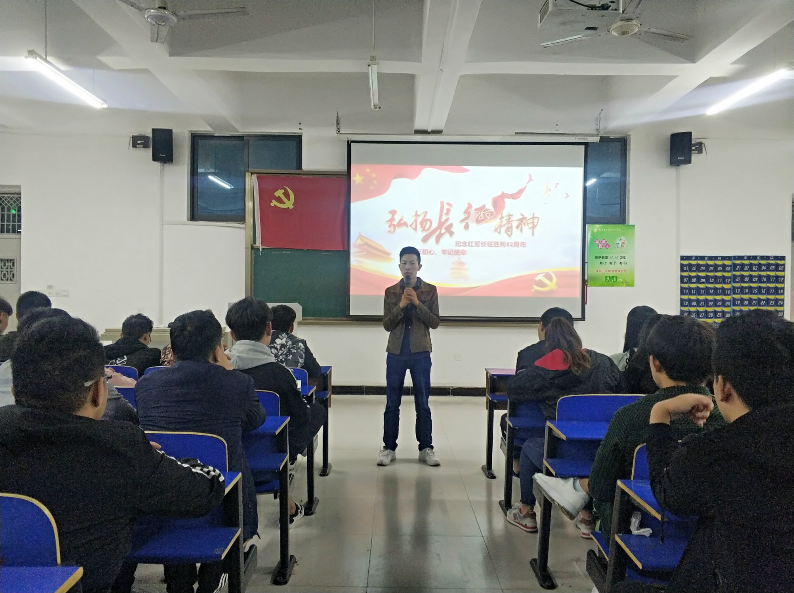 2018年10月30日是长征胜利82周年的日子。第一党员工作站组织365VIP英国上市官网所有员工党员,积极分子在建工楼北二教室开展“缅怀革命先烈,弘扬长征精神!”主题观影活动。本次活动由第一党员工作站站长尹正耀同志主持。