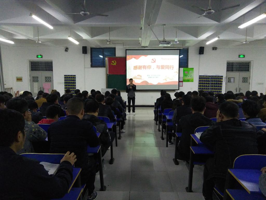 2018年11月14日晚,365VIP英国上市官网第一党员工作站组织全体员工党员和积极分子在建工楼北三教室成功开展了“爱心暖冬”动员大会,本次大会由第一党员工作站站长尹正耀同志主持举行。