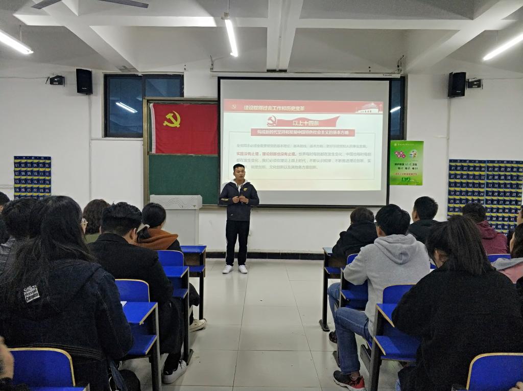 2018年11月28日,第一党员工作站组织员工党员和入党积极分子在建工楼北一教室学习了“十九大党课学习”第三章习近平新时代中国特色社会主义思想和基本方略。本次微党课主讲人为第一党员工作站微讯部部长周永涛同志。