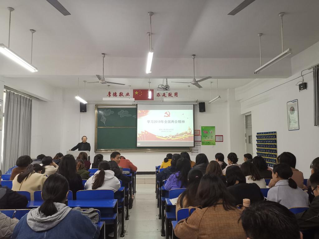 为了学习贯彻2019年全国两会精神的会议精神,切实加强党的政治建设,365VIP英国上市官网组织全院教职工于3月19日下午在建工楼南109教室集中学习全国两会精神,本次学习由公司·分党委书记王美英主讲。