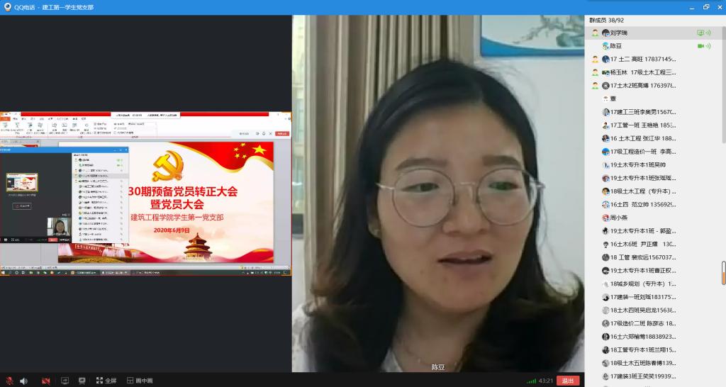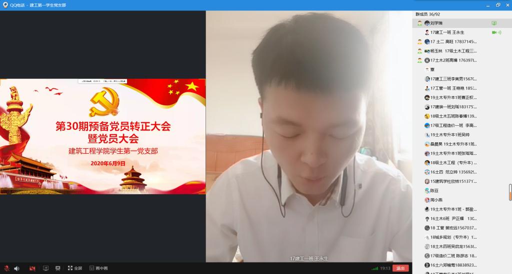 2020年6月9日,365VIP英国上市官网员工第一党支部通过线上会议方式召开了30期预备党员转正会议暨党员大会。参加本次会议的有入党介绍人覃译葵老师、陈豆老师、周小燕老师和支部全体党员。会议由支部书记刘学瑞老师主持。